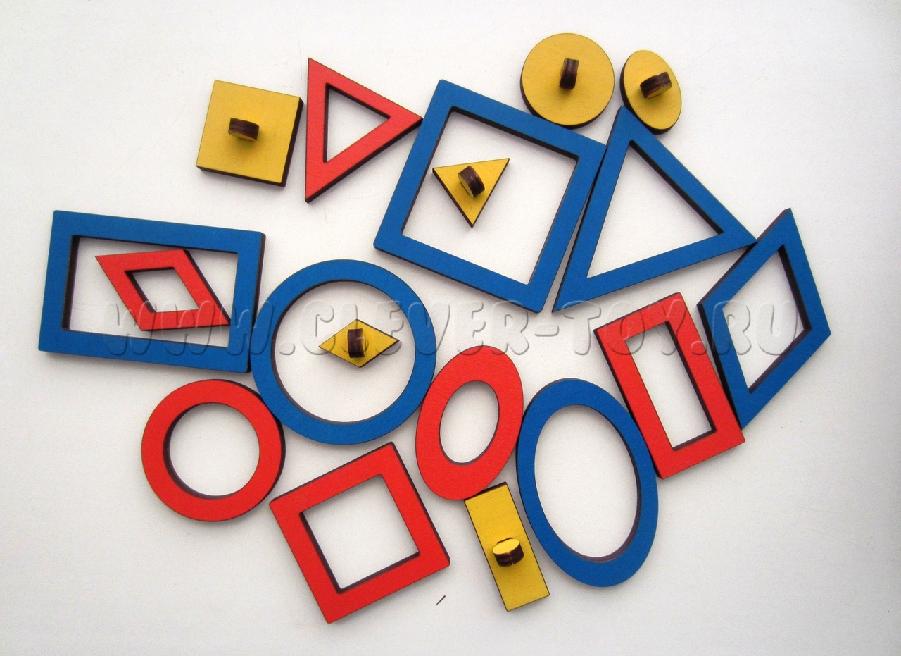 Рамки - вкладыши помогут изучить геометрические фигуры, размер (большой-маленький), разовьют глазомер и координацию движений рук. Рамки можно обводить на бумаге и раскрашивать, составляя различные узоры и орнаменты.