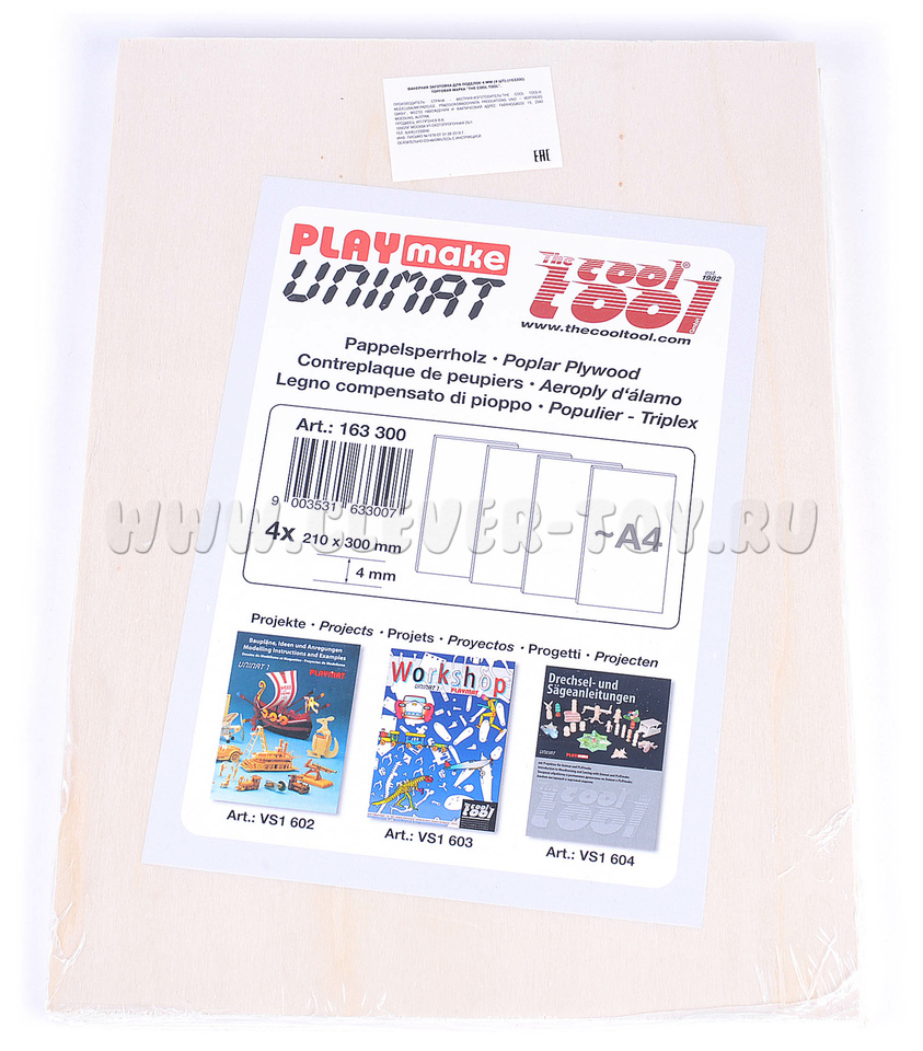 Фанерные заготовки – это основной расходный материал при работе на PlayMake. Данная фанера изготавливается из древесины мягких пород (например, тополь), что позволяет ее легко пилить. Но при этом детали получаются достаточно жесткими и прочными. Фанера не крошится, хорошо окрашивается.