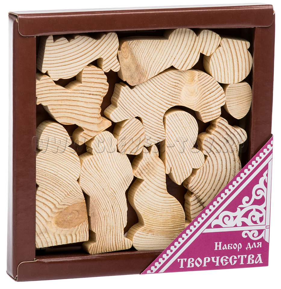 - Деревянные фигурки персонажей сказок - 11 деталей;