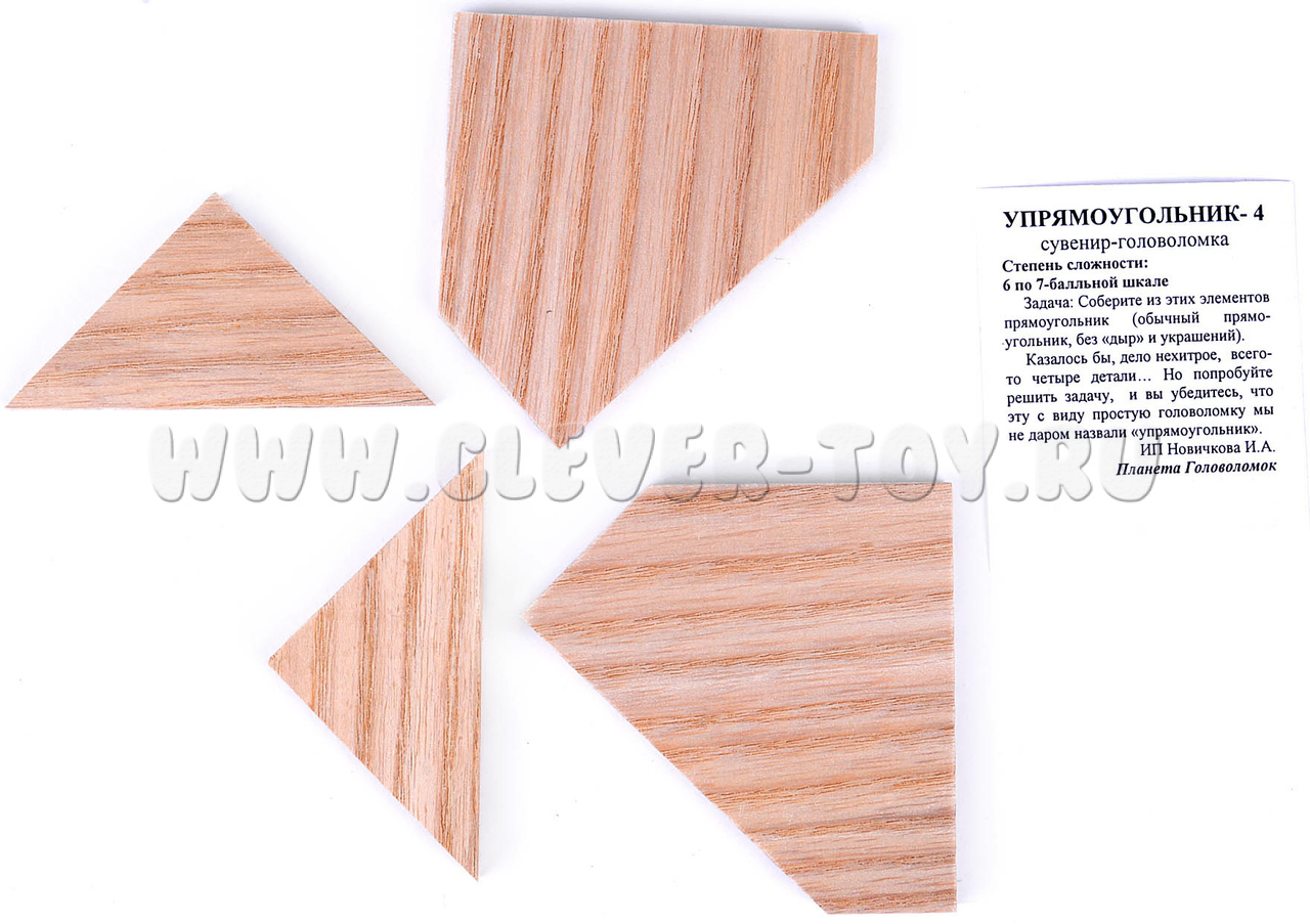 Цель игры: собрать из 4 деталей головоломки обычный прямоугольник без просветов. Задача не из легких!