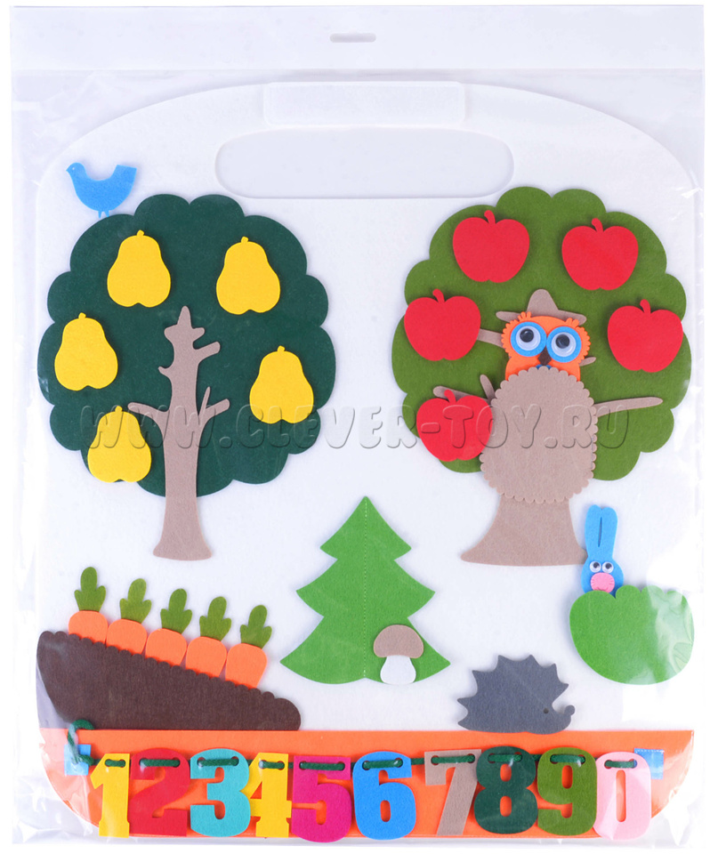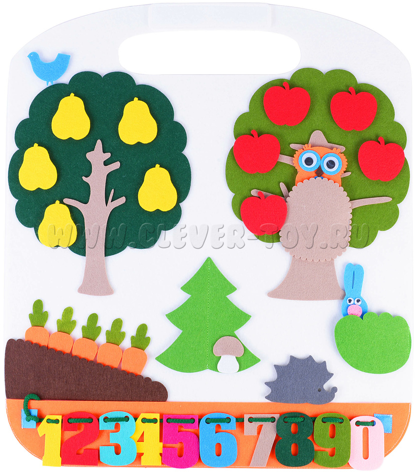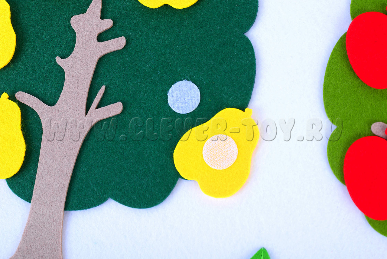 2. Прилепляйте и отлепляйте яблоки, груши, сову, зайца и т.д.;