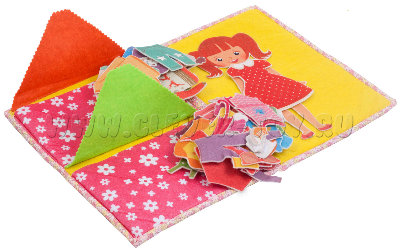 Игра-конструктор для детей старше 3-х лет. Авторская развивающая книга «Одежда для девочки» из ковролина с фигурами на липучках от российской компании «Lip-Lip».
