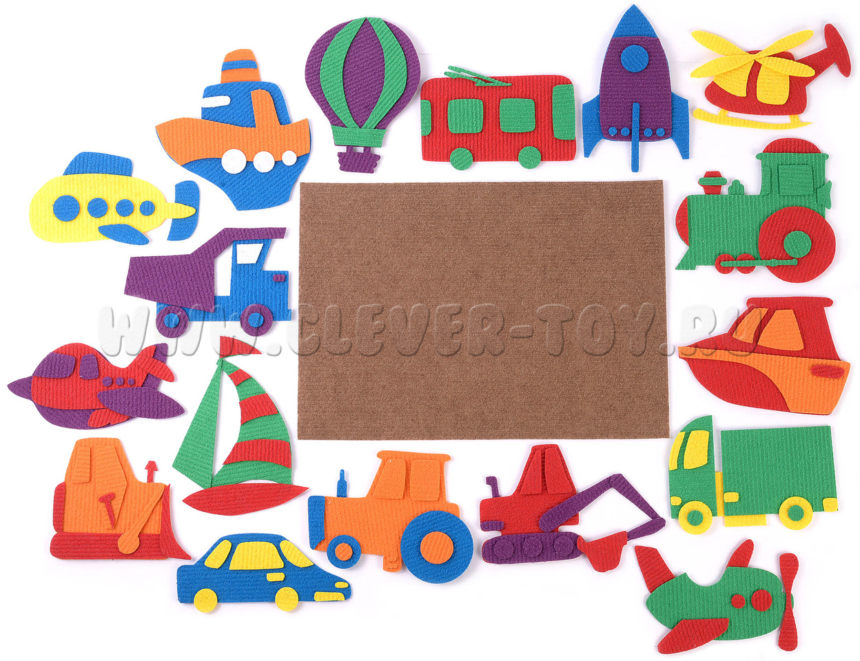 Игры-занятия с ярким ковролиновым набором «Транспорт» увлекут вашего ребёнка и помогут подготовить его к школе. Рекомендован специалистами для дошкольного развития.