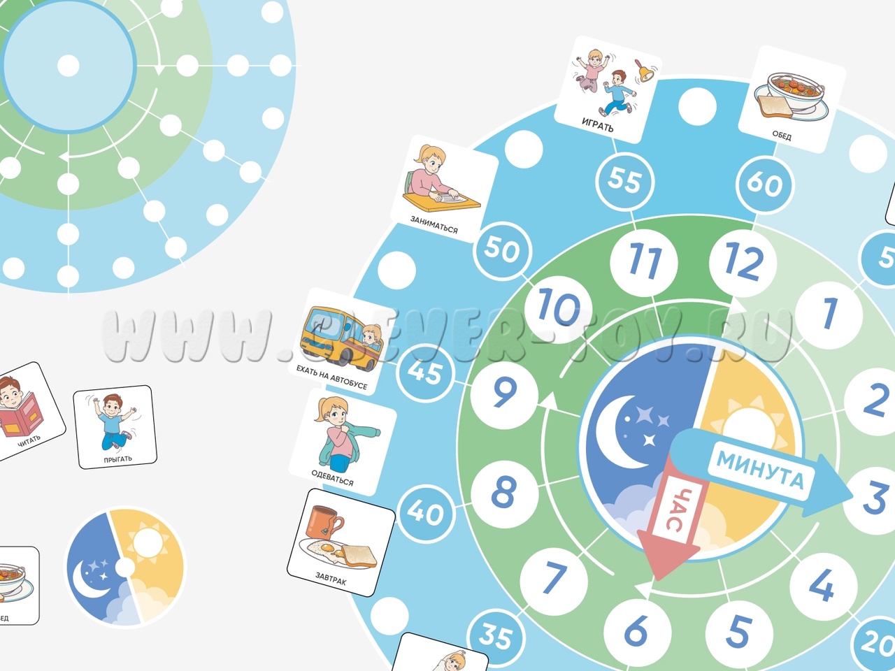 Карточки ПЭКС: визуальное расписание "По часам"