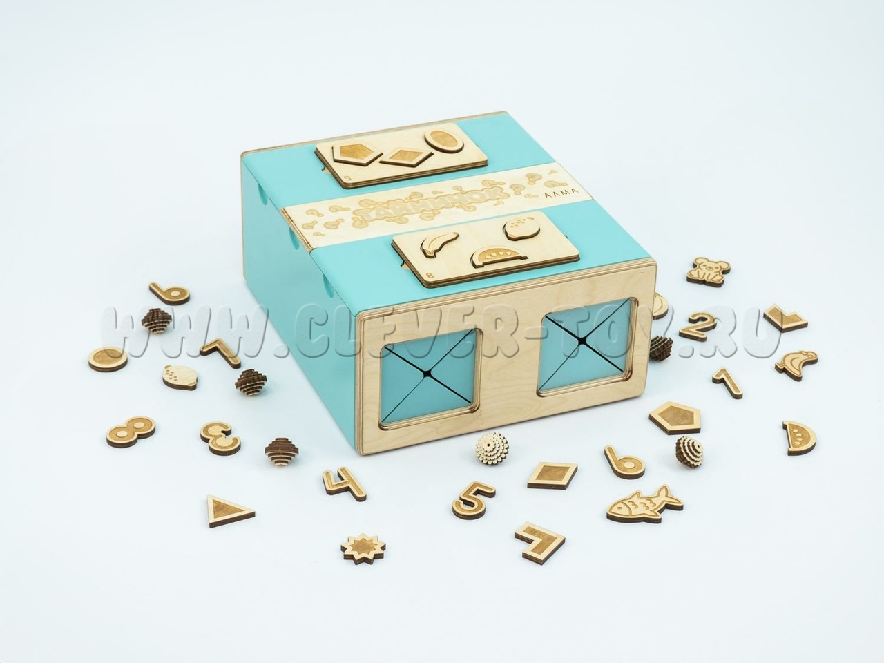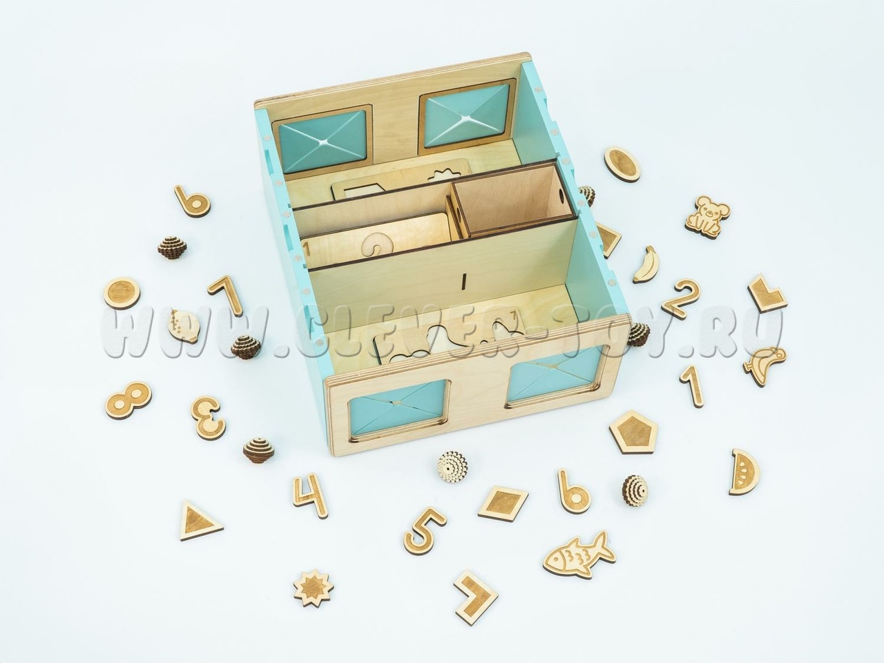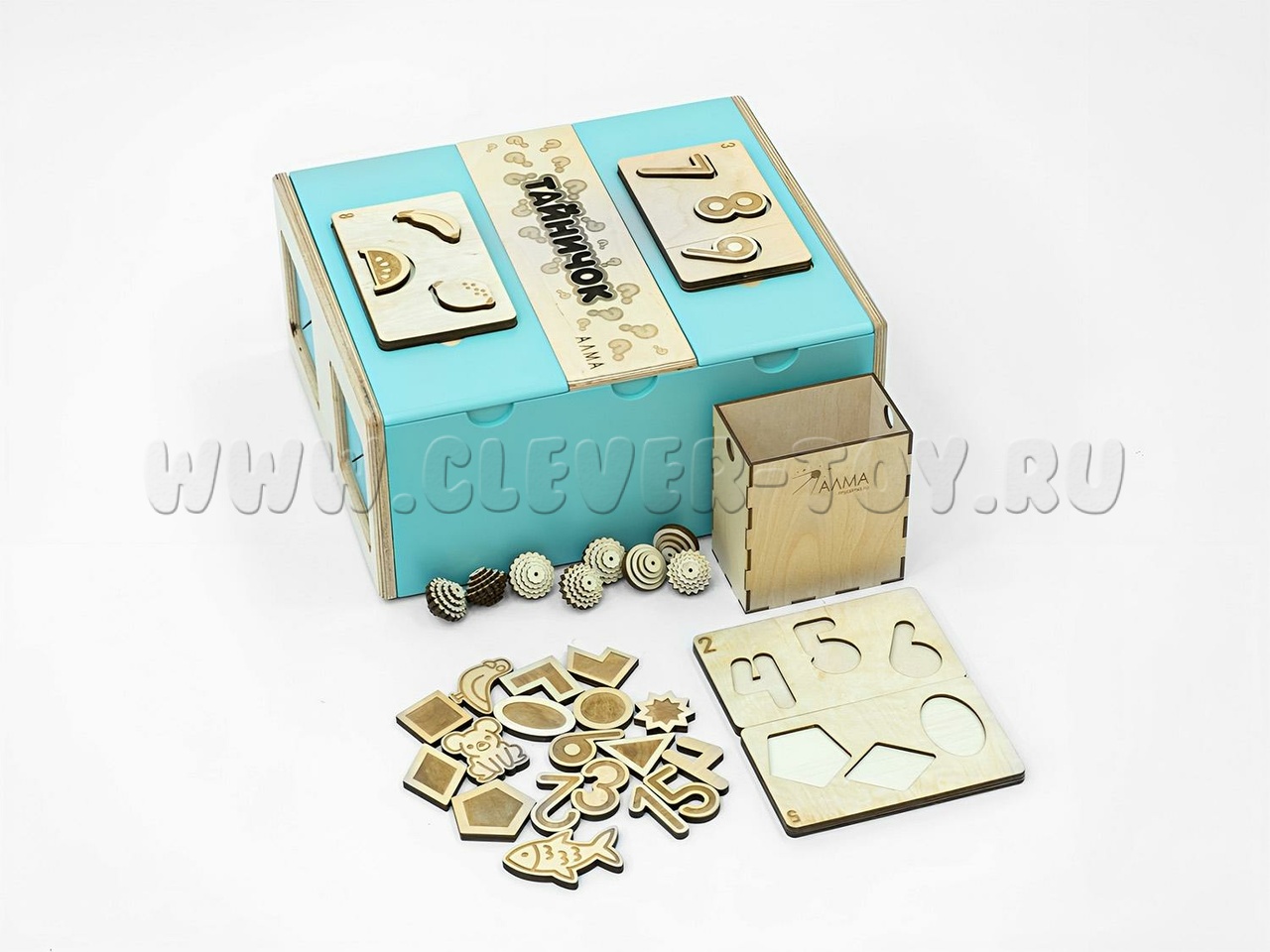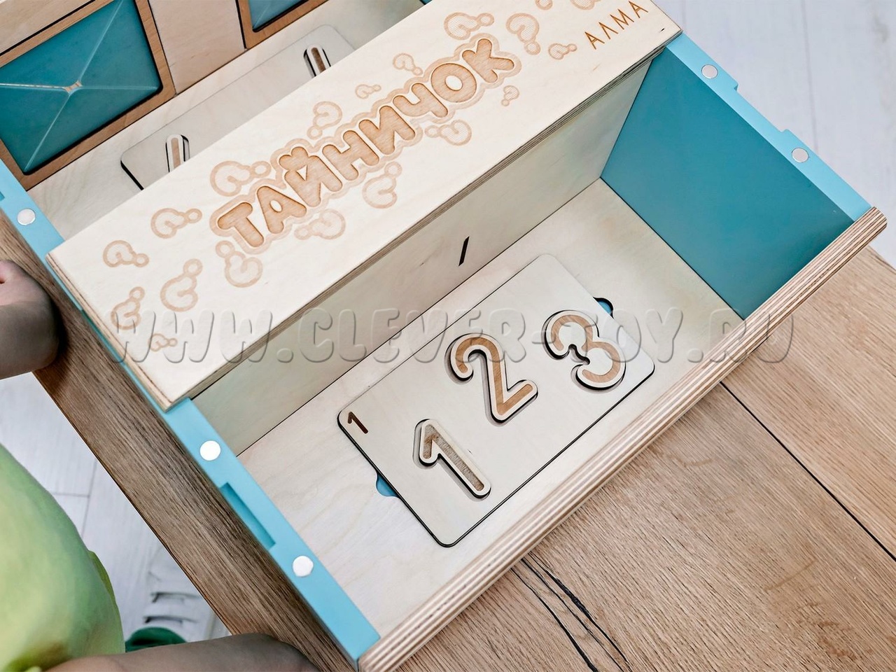 Чтобы тактильные элементы не терялись, хранить их можно внутри самого Тайничка, в специально отведенной зоне в центре ящика. Коробочка плотно закрывается, не давая выпасть содержимому.