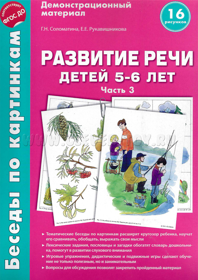 Тематические беседы по картинкам расширят кругозор ребенка, научат его сравнивать, обобщать, выражать свои мысли. Лексические задания, пословицы и загадки обогатят словарь дошкольника, помогут в развитии слухового внимания. Игровые упражнения, дидактические и подвижные игры сделают обучение не только полезным, но и занимательным.