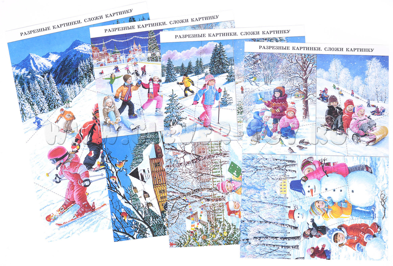 - 10 разрезных картинок на 4 листах А (игра "сложи картинку");