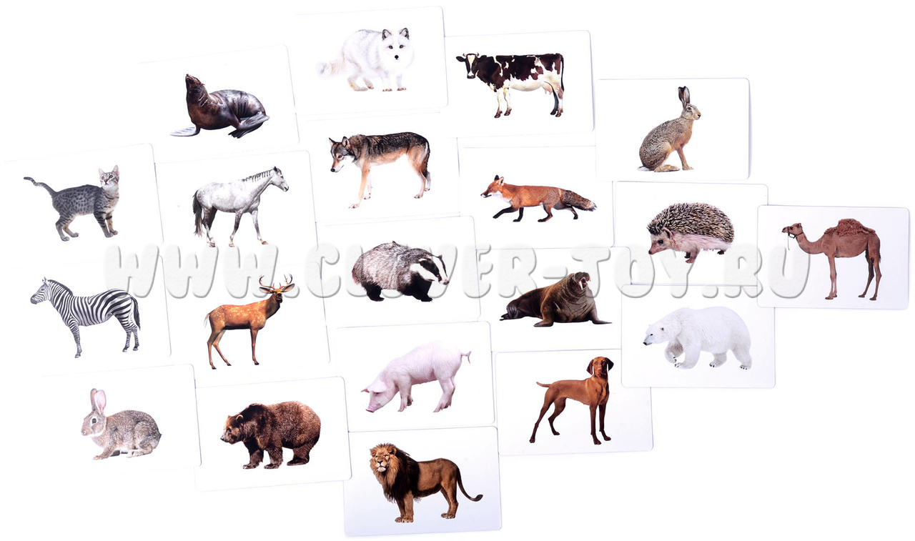 - 20 карточек с животными (50 мм х 90 мм): раздаточный материал;
