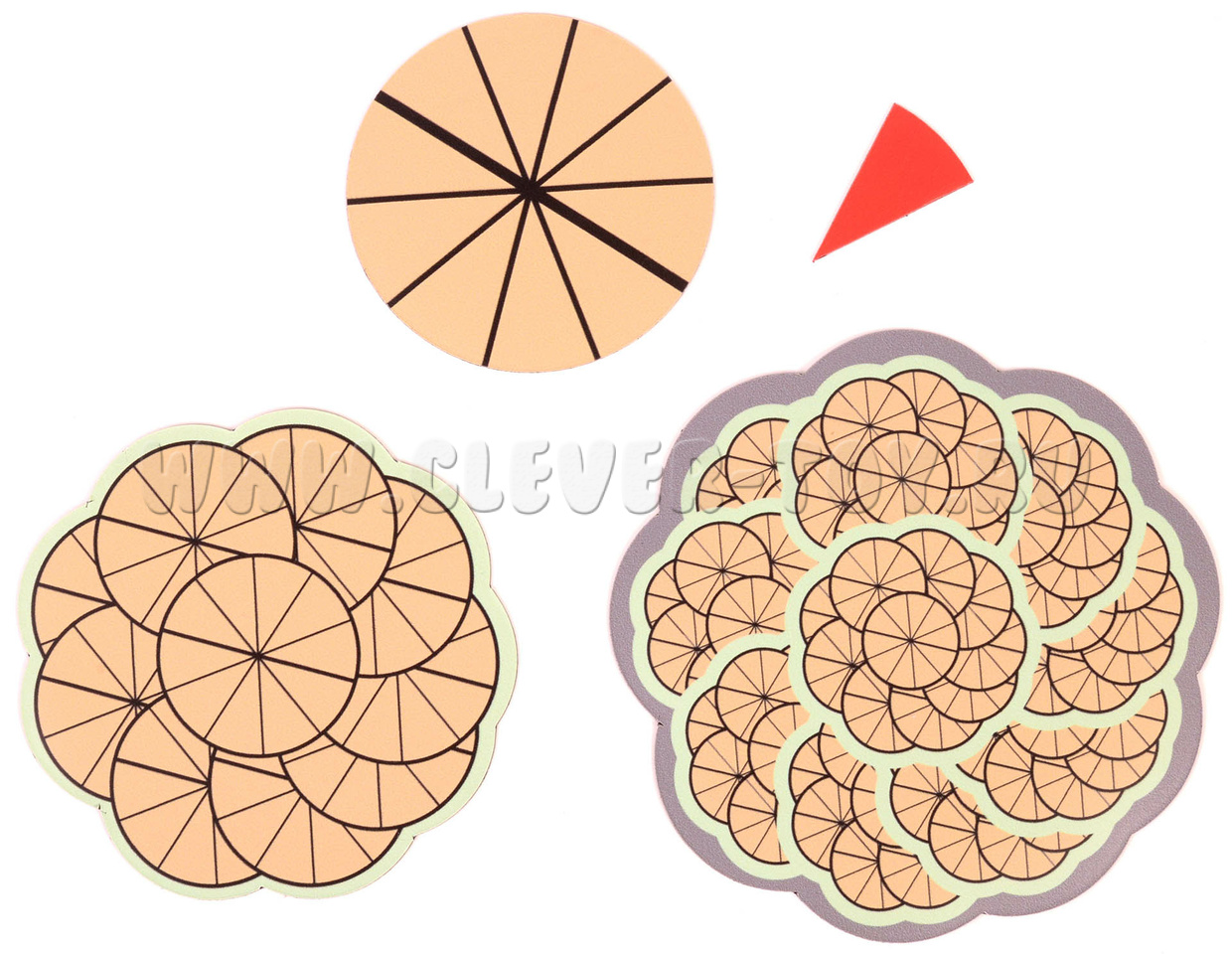 тысячи: 10 см х 10 см; сотни: 8 см х 8 см; десятки: 6 см х 6 см.