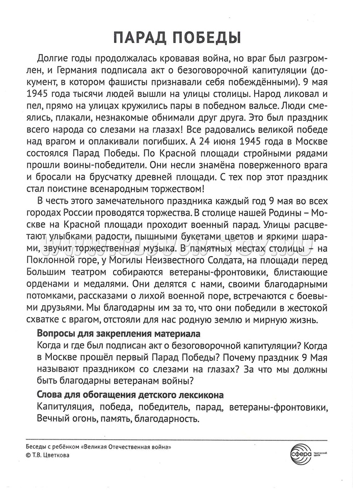 Беседы с ребенком. Великая Отечественная Война 12 картинок с текстом