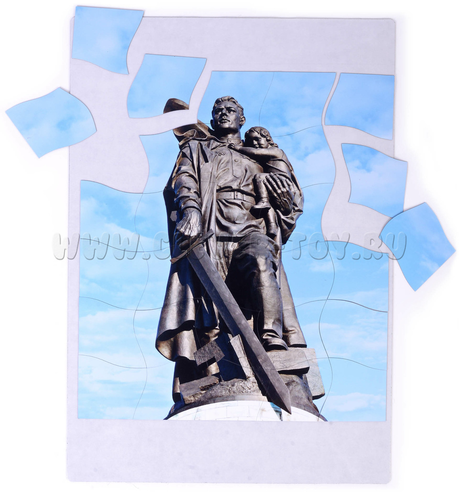 С помощью пазлов можно украсить школьную доску ко Дню Победы 9 мая. Пособие подходит для старшей группы детского сада и знакомит детей с памятниками Великой Отечественной войны.