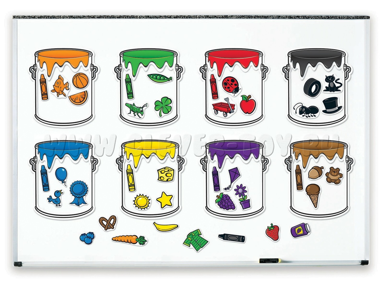 Каждая баночка-рамка имеет свой цвет и содержит в себе 5 магнитных фигурок, соответствующих этому цвету.